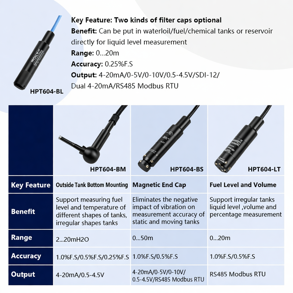 Application:Eau, essence, diesel, mesure du niveau de carburant, etc.
