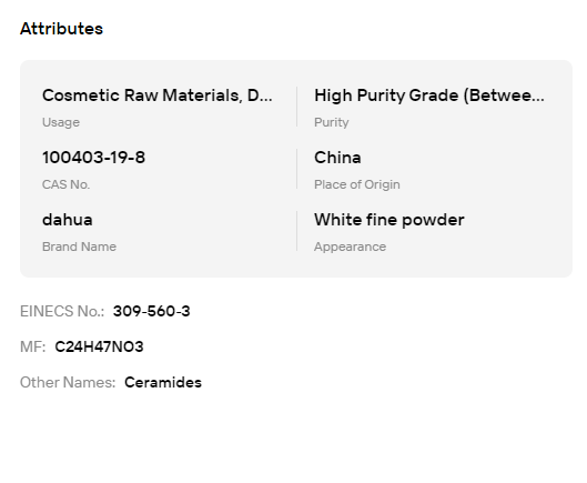 Composé de céramide végétal à haute activité, matière première hydratante et nourrissante pour la formule cosmétique de soins pour peaux sensibles