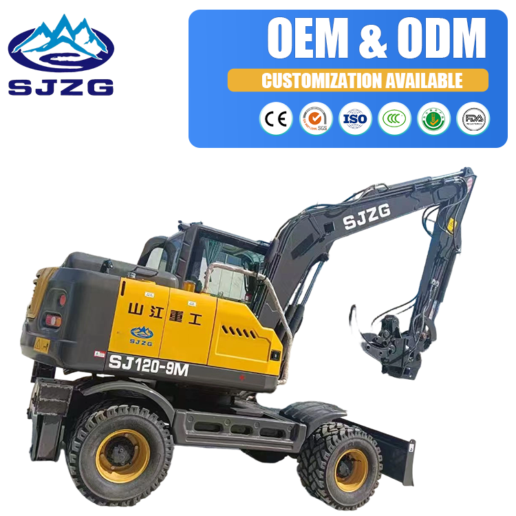 Excavatrice hydraulique à haute adaptabilité avec 4 pneus, excavatrice à roues moyennes 7,6t, nouvelle machine à roues Hyundai Yuchai