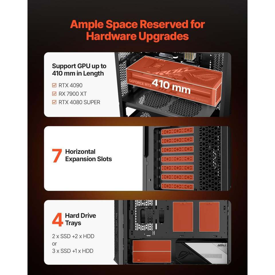 Boîtier PC Gaming Full-Tower à Flux d'Air Élevé avec 3 Ventilateurs PWM 140mm, Gestion des Câbles, Filtre Anti-Poussière Magnétique et Panneau à Flux d'Air Optimal