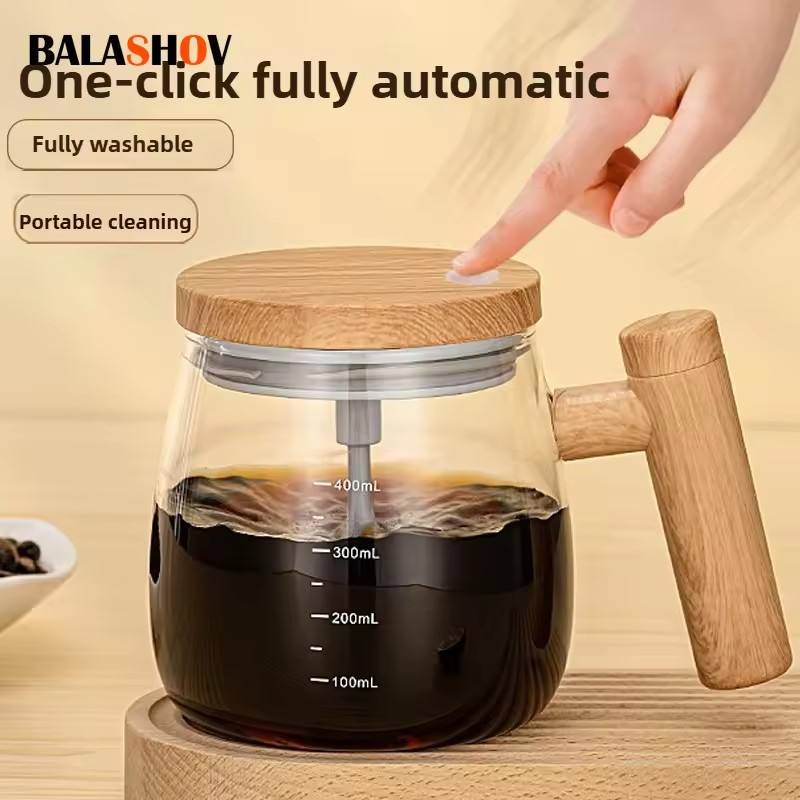 Tasse à café électrique élégante avec poignée, 400 ml, en verre, avec couvercle à agitation automatique, alimentation manuelle, pour usage domestique et hôtelier