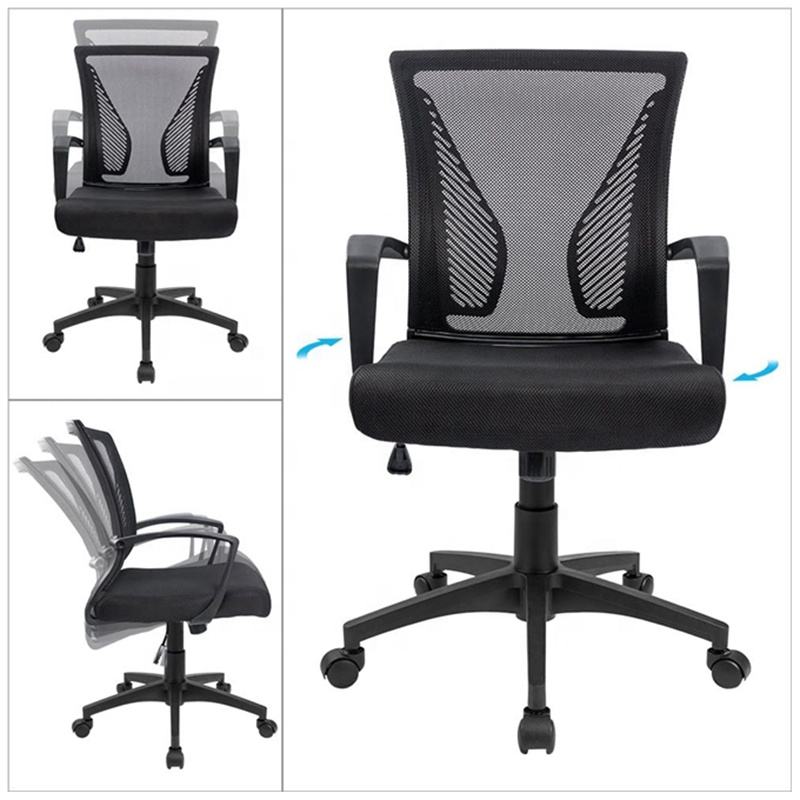 Chaise de bureau réglable haute autorité Dossier papillon ergonomique confortable avec tissu en maille moderne pivotant amovible Noir