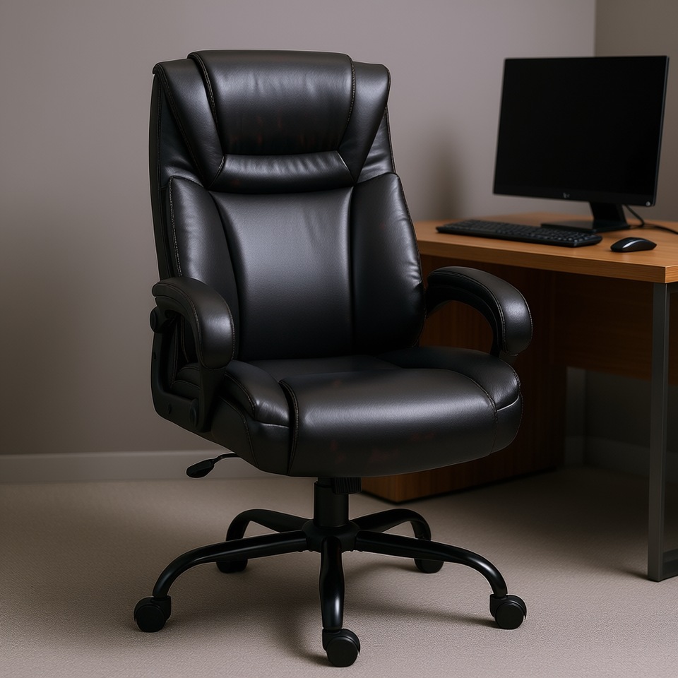Chaise de bureau de direction à dossier haut en cuir PU avec accoudoirs réglables et pivotante pour usage professionnel