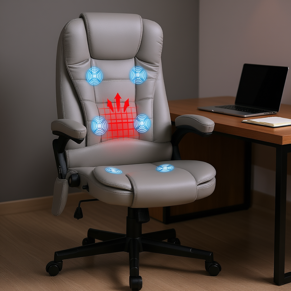 Fauteuil de bureau inclinable à dossier haut en cuir PU, réglable en hauteur, avec télécommande, gris