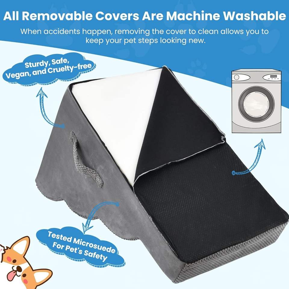 High Beds Curved Dog Stairs Small Dog Sofa Bed Non-Slip Pet Steps Ladder Pet Sponge Ladder Removable and Washable Pet Stairs