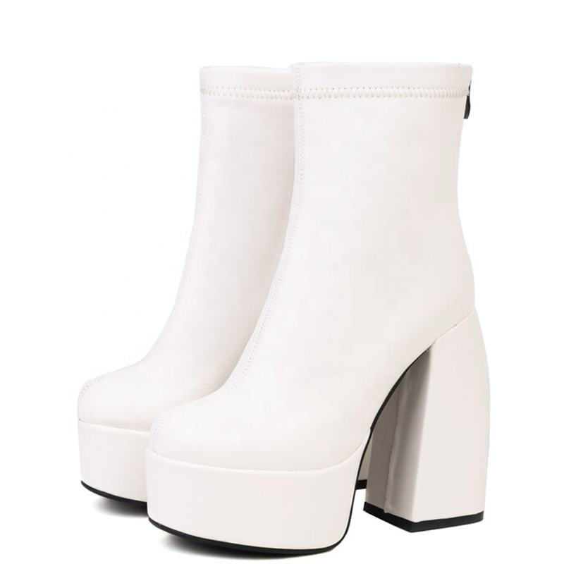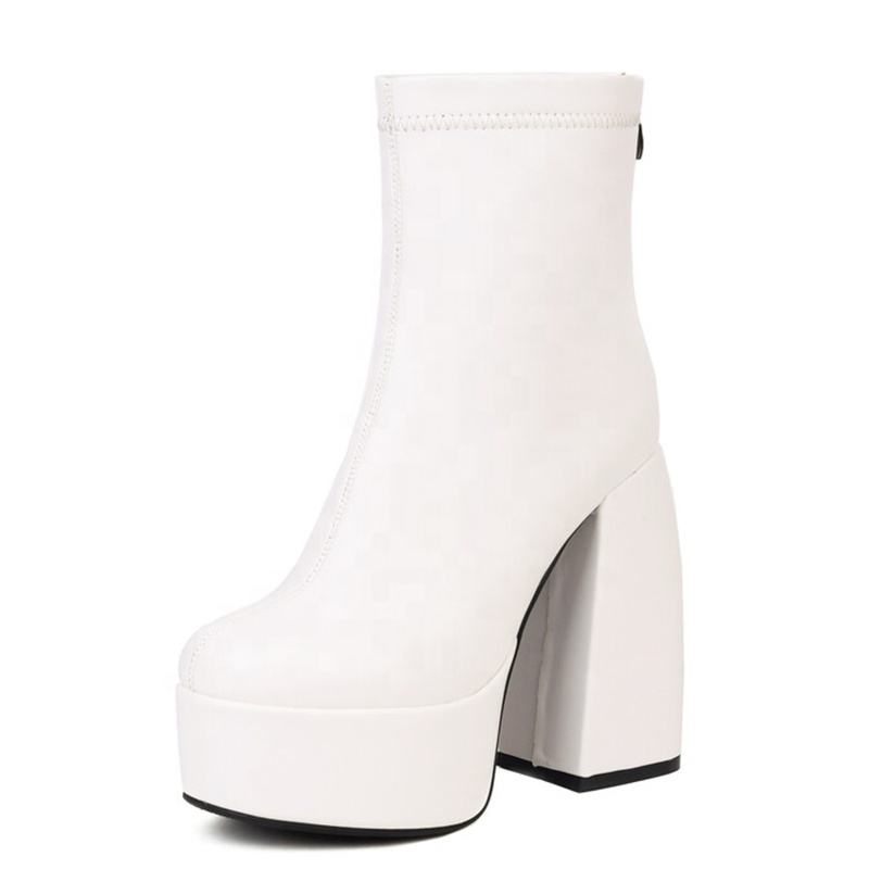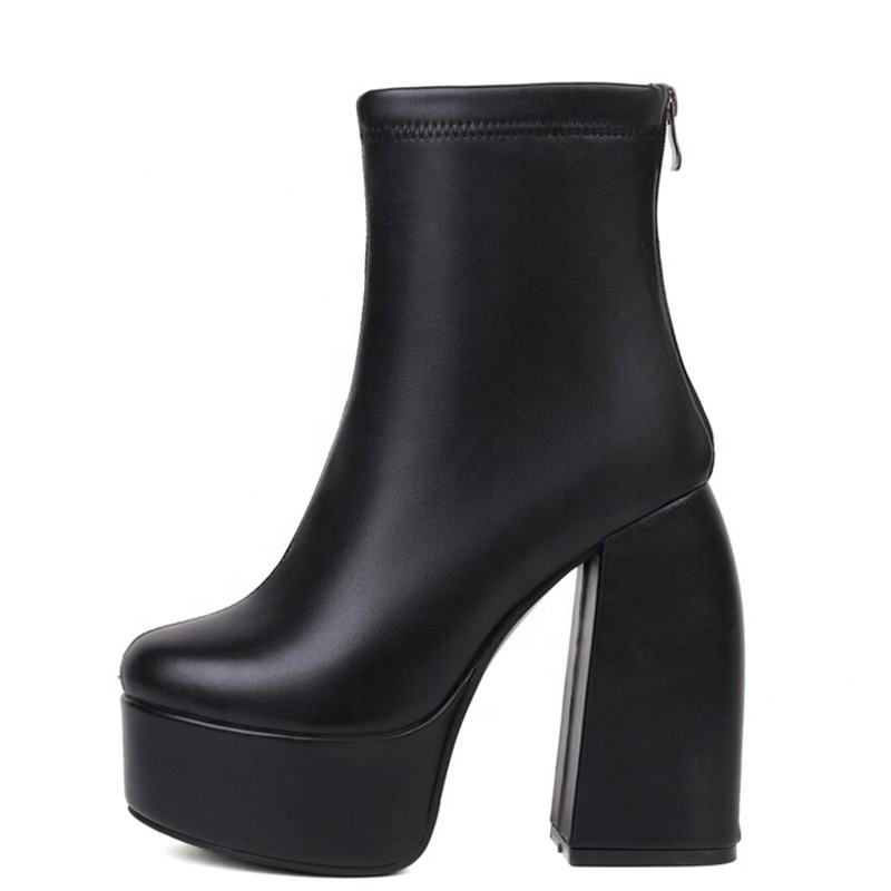 Bottines à talons hauts et plateforme pour femme, grande taille 48, bout rond, printemps-automne, chaussures à talons larges