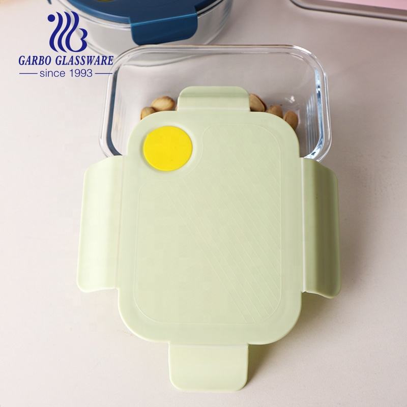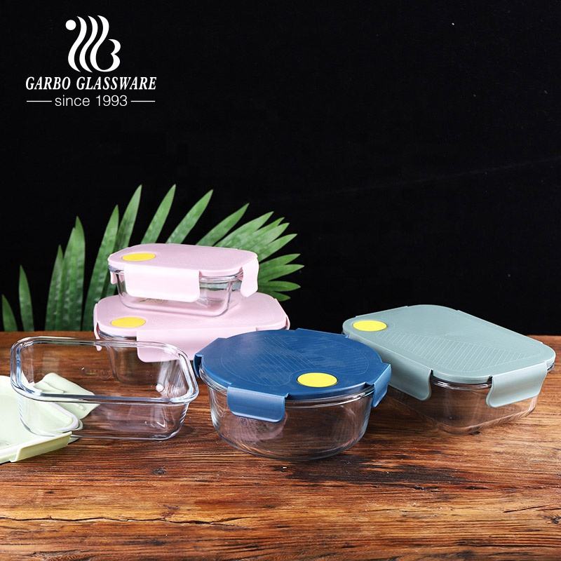 Composant:Bol en verre transparent + couvercle en plastique coloré