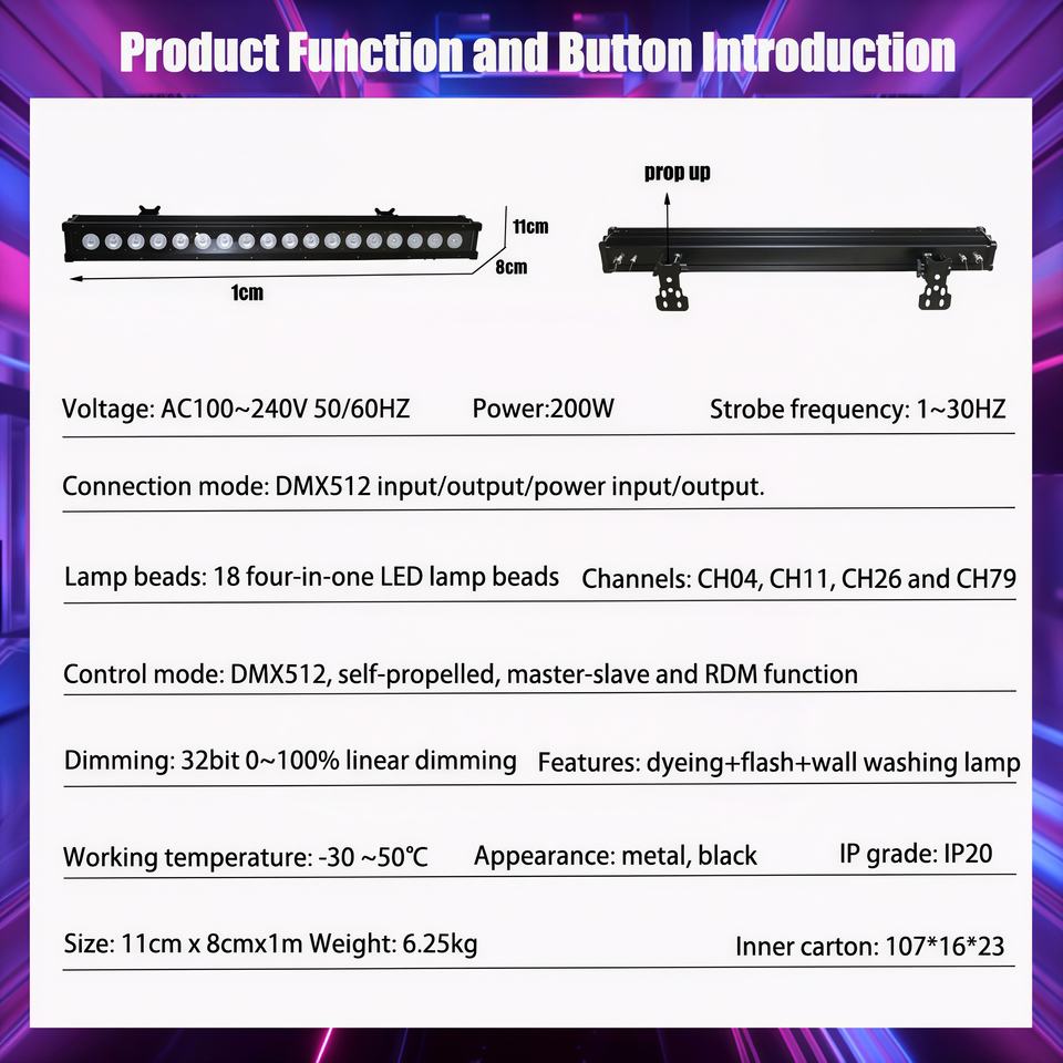 Éclairage de scène à haute luminosité, 18 pièces, 4 en 1, LED Wall Washer, multifonction, lavage de couleur RVB, flash, contrôle DMX, gradation 32 bits