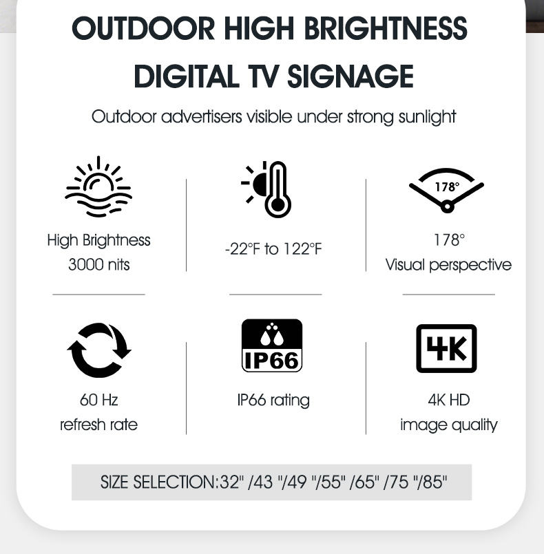 Utilisation:Publicité publier, L'aéroport, Affichage de plats, Ascenseur, Hall d'exposition, Traitement médical, Fournitures de Restaurant et D'hôtel, Détail Vendeur, Libre-service affaires, Center commercial, Métro, Wayfinding, Bienvenue affichage