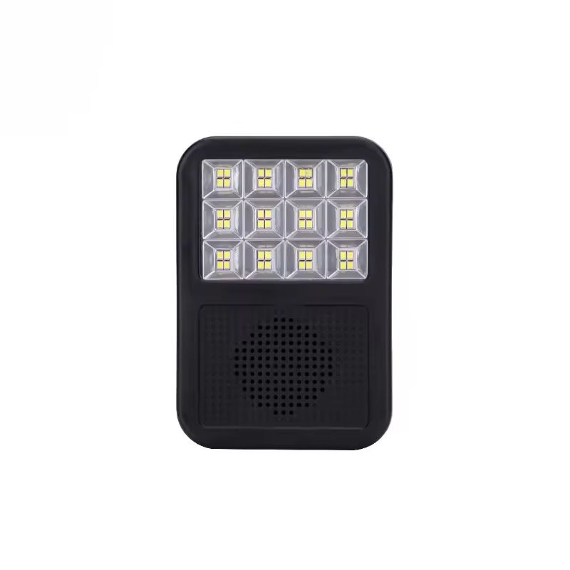 Lampe Solaire d'Urgence Haute Luminosité Étanche IP63 avec Haut-Parleur, Batterie Rechargeable au Lithium Fer Phosphate 3.7V 2000mAh