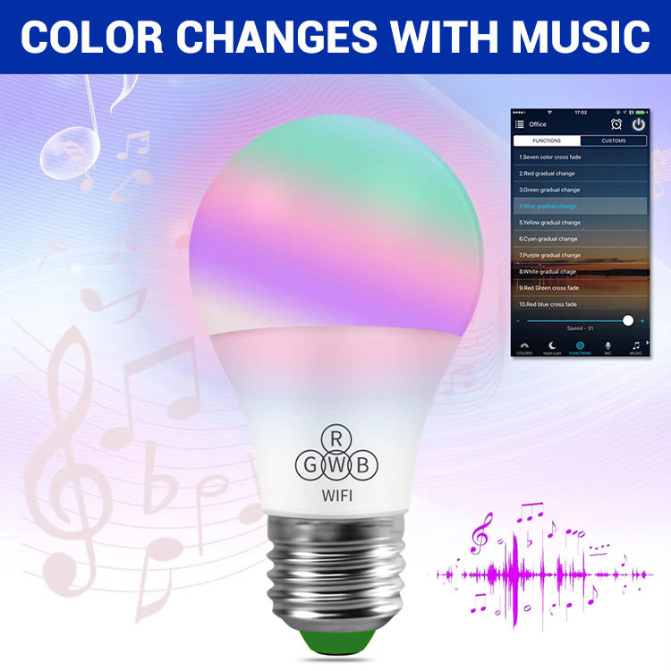 Ampoule LED intelligente à intensité variable RGB à changement de musique avec télécommande et contrôle Wifi à haute luminosité
