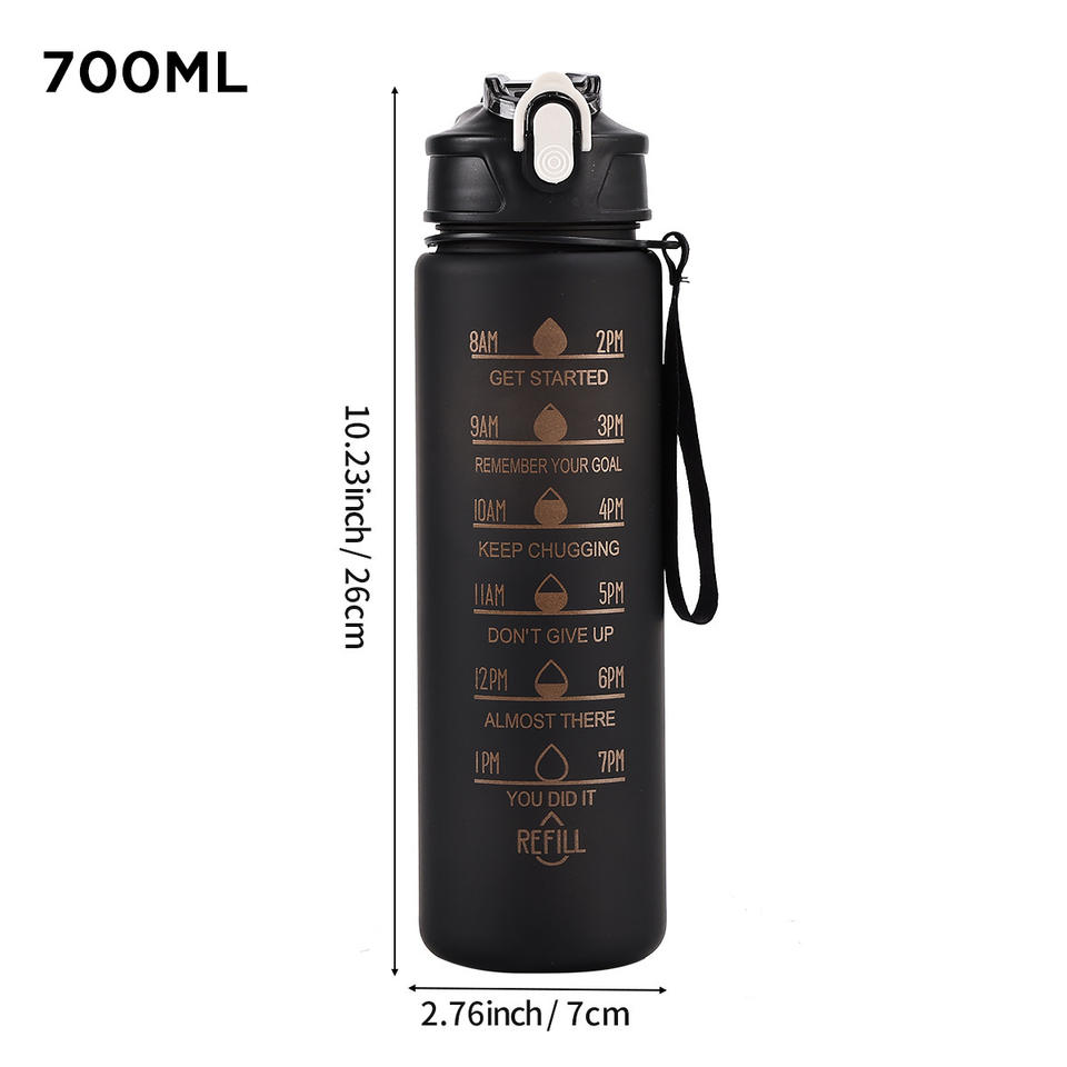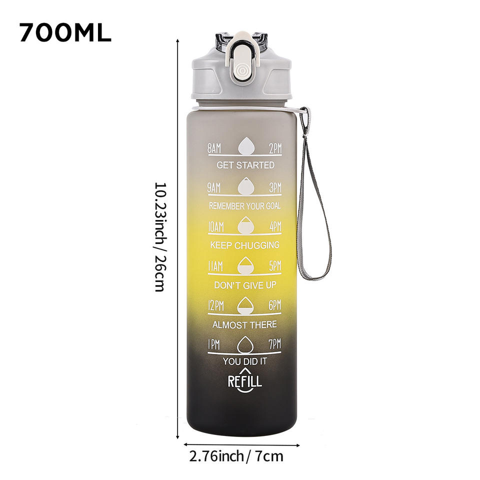 Bouteilles d'eau de sport en plastique anti-fuite de 750 ml à grande capacité avec marqueur de temps motivant et paille, idéales pour la course en extérieur et la salle de sport