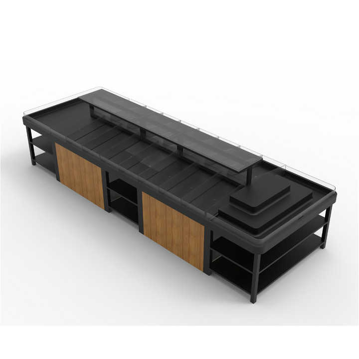 Étagère de présentation de légumes en métal double face haute capacité pour supermarché - Durable et autoportante