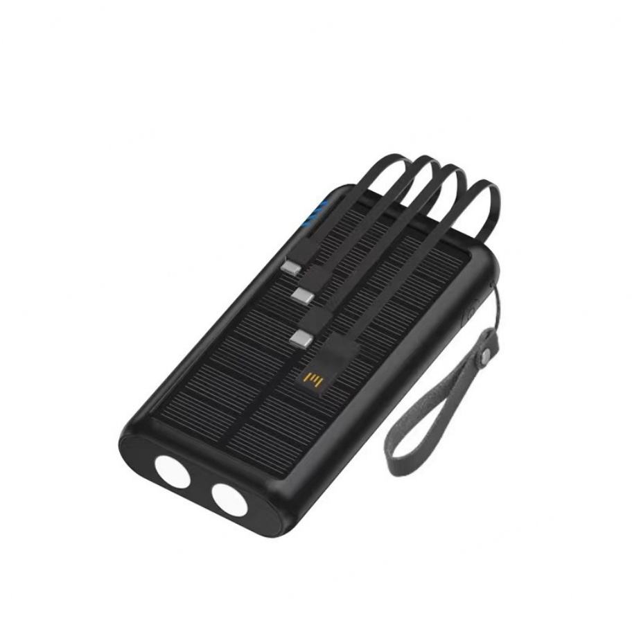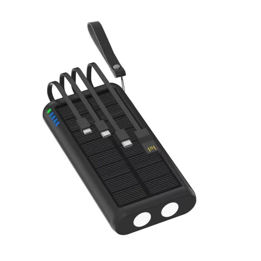 Chargeur solaire portable haute capacité à charge rapide avec 4 câbles intégrés, double USB, pour le camping en plein air, les voyages, batterie externe 30000mAh