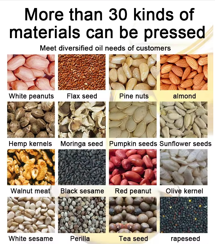 Peanut Oil, Avocado Oil, Olive Oil, Palm Oil, Safflower Seed Oil, Sesame Oil, Soybean Oil, Sunflower Seed Oil, Coconut Oil, Cotton Seed Oiloil type