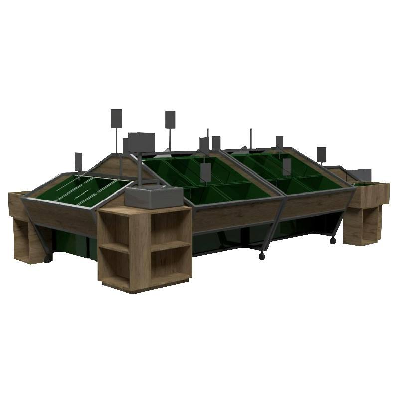 Étagère de présentation de légumes pour supermarché, double face, métallique, haute capacité, avec roulettes