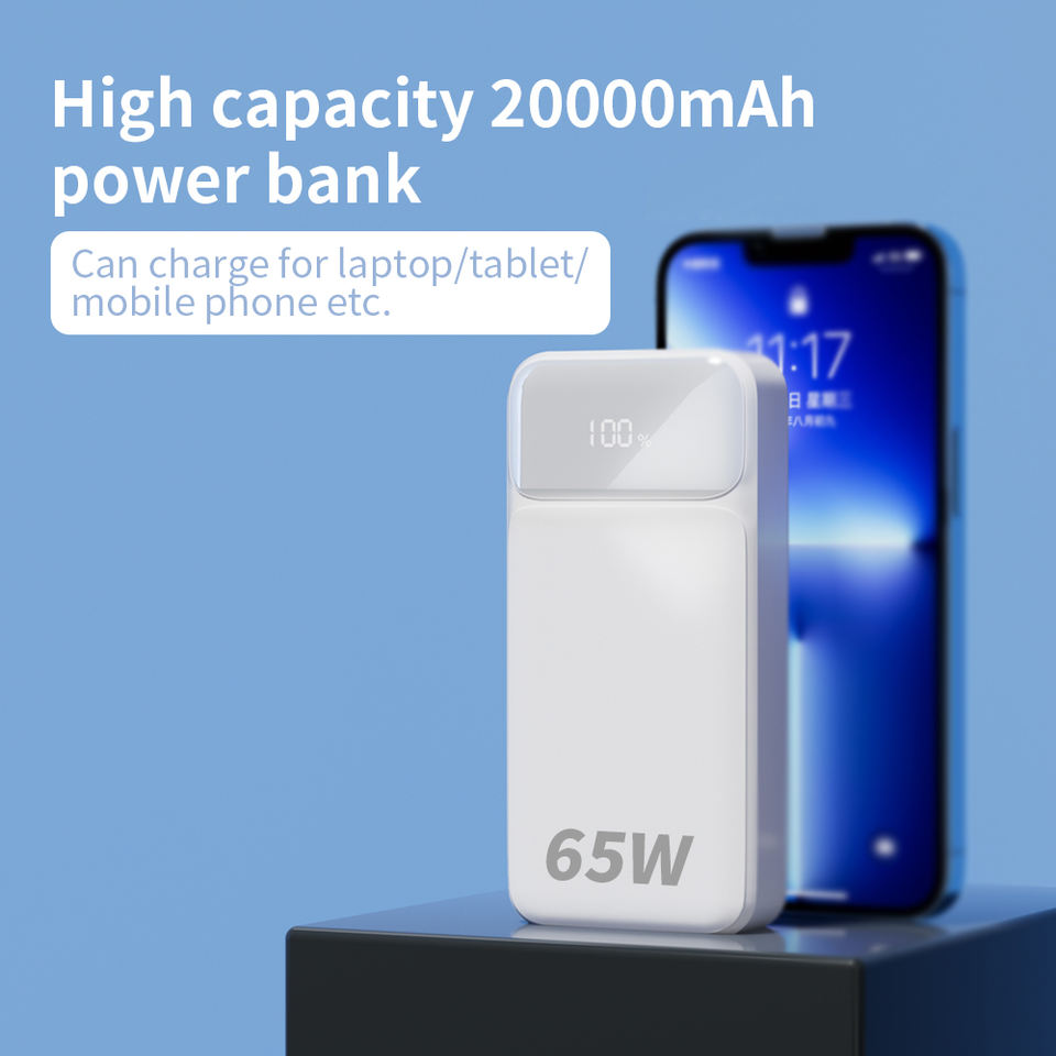 Batterie externe haute capacité 20000mah Charge rapide PD 65W Charge portable pour ordinateur portable Batterie externe avec écran numérique