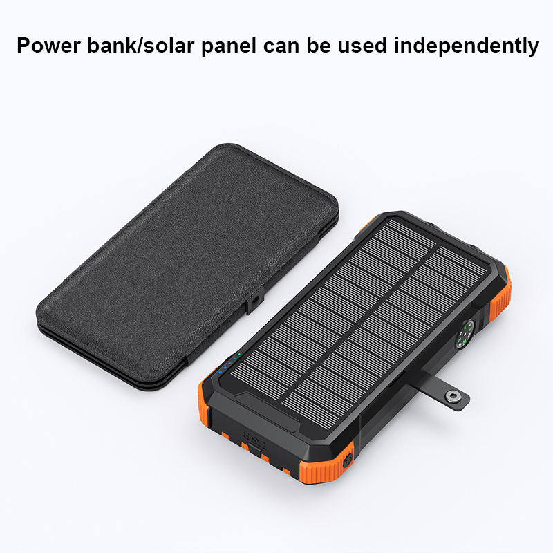 Chargeur solaire sans fil haute capacité avec câble intégré pour l'extérieur, 20000 mAh, 15 W, banques d'alimentation solaires
