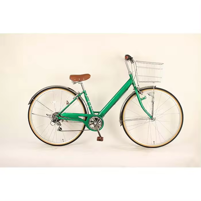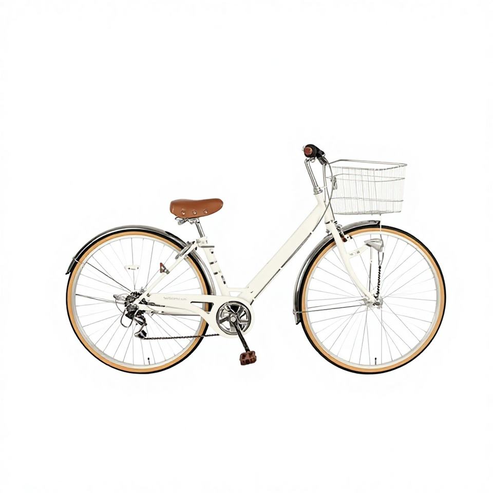 Vélo de ville pour adulte en acier à haute teneur en carbone de 27 pouces avec panier en acier, vitesses variables et selle confortable pour la ville