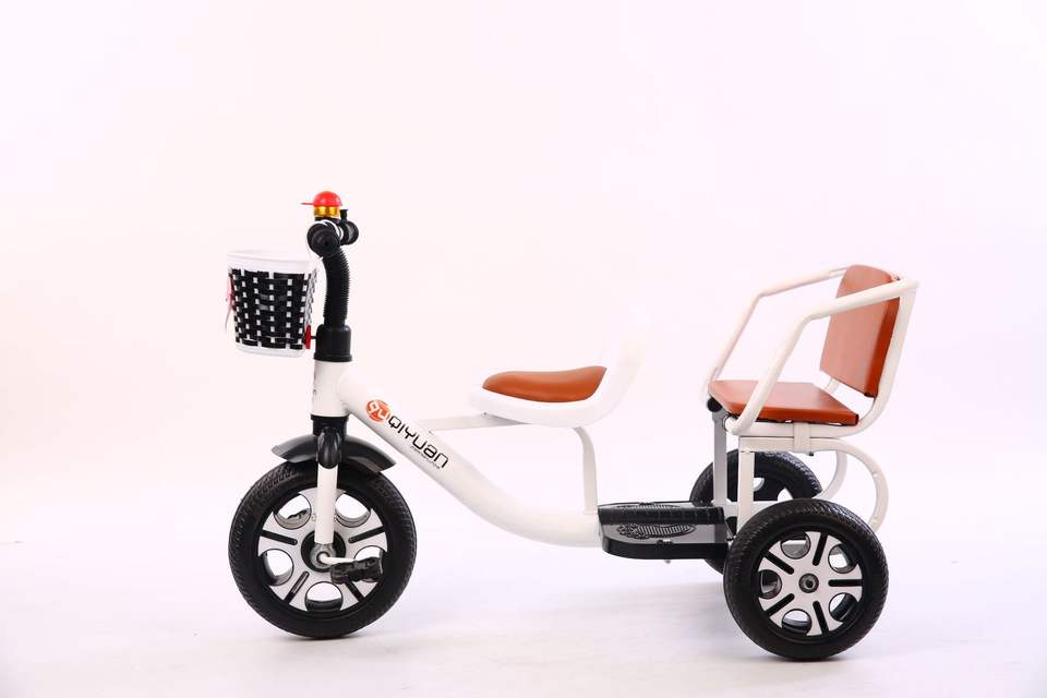Tricycle pour enfants à deux places en acier à haute teneur en carbone / Tricycle à pédales doux et confortable pouvant transporter des personnes / Tricycle d'équilibre pour bébé