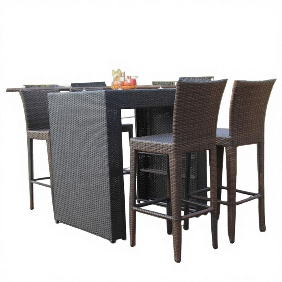 Ensemble de bar extérieur moderne en polyrotin avec chaise haute et table - Imperméable et résistant aux UV