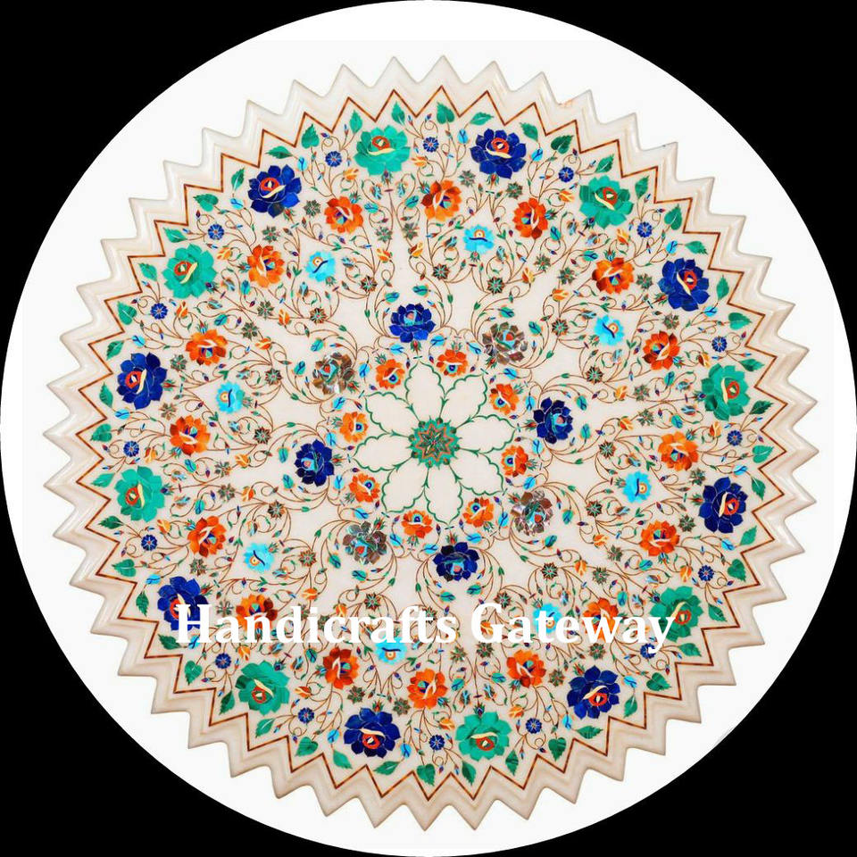 Dessus de table en incrustation de marbre blanc de qualité haut de gamme Table à manger pour thé et café de forme ronde Dessus de table à usage d'entreprise et de cadeau