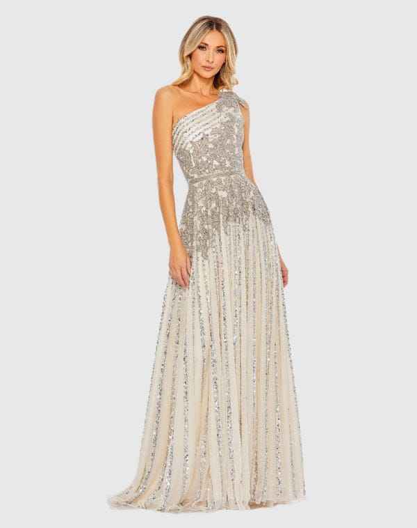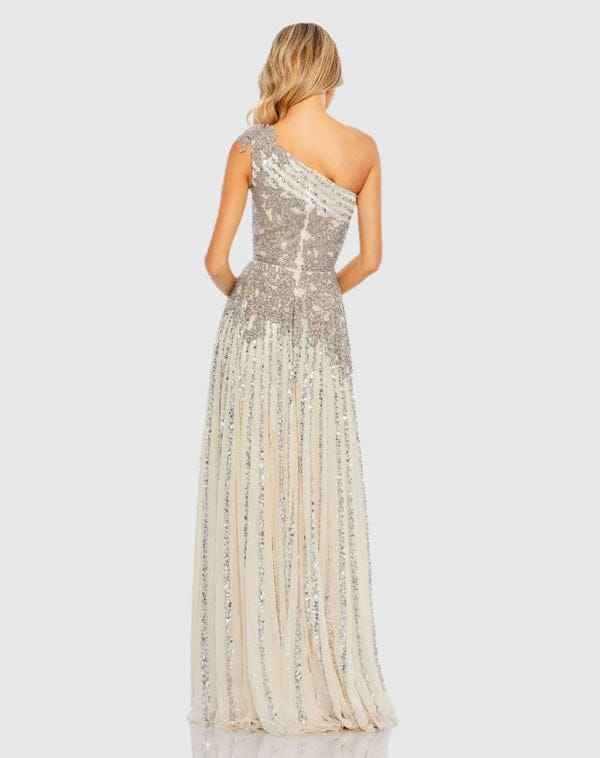 Robe de soirée à une épaule pour femmes royales haut de gamme sans manches Sequin Wrap Hip Fishtail Logo avant pour les dîners d'hébergement