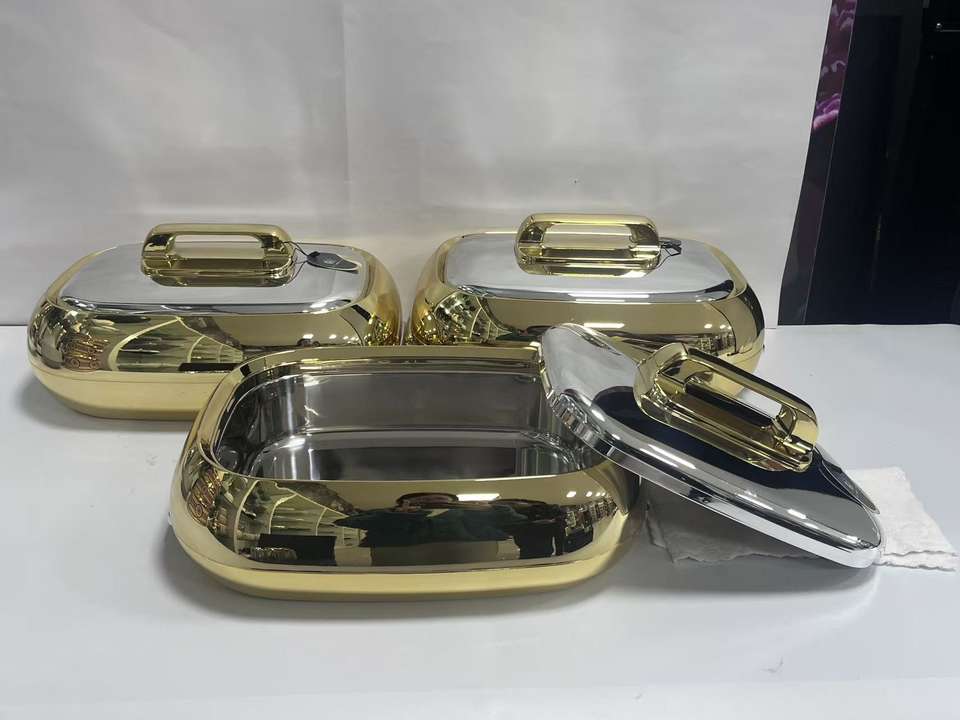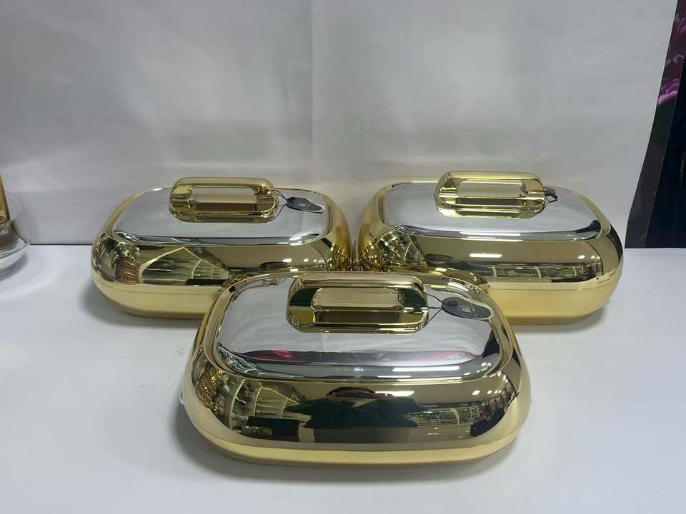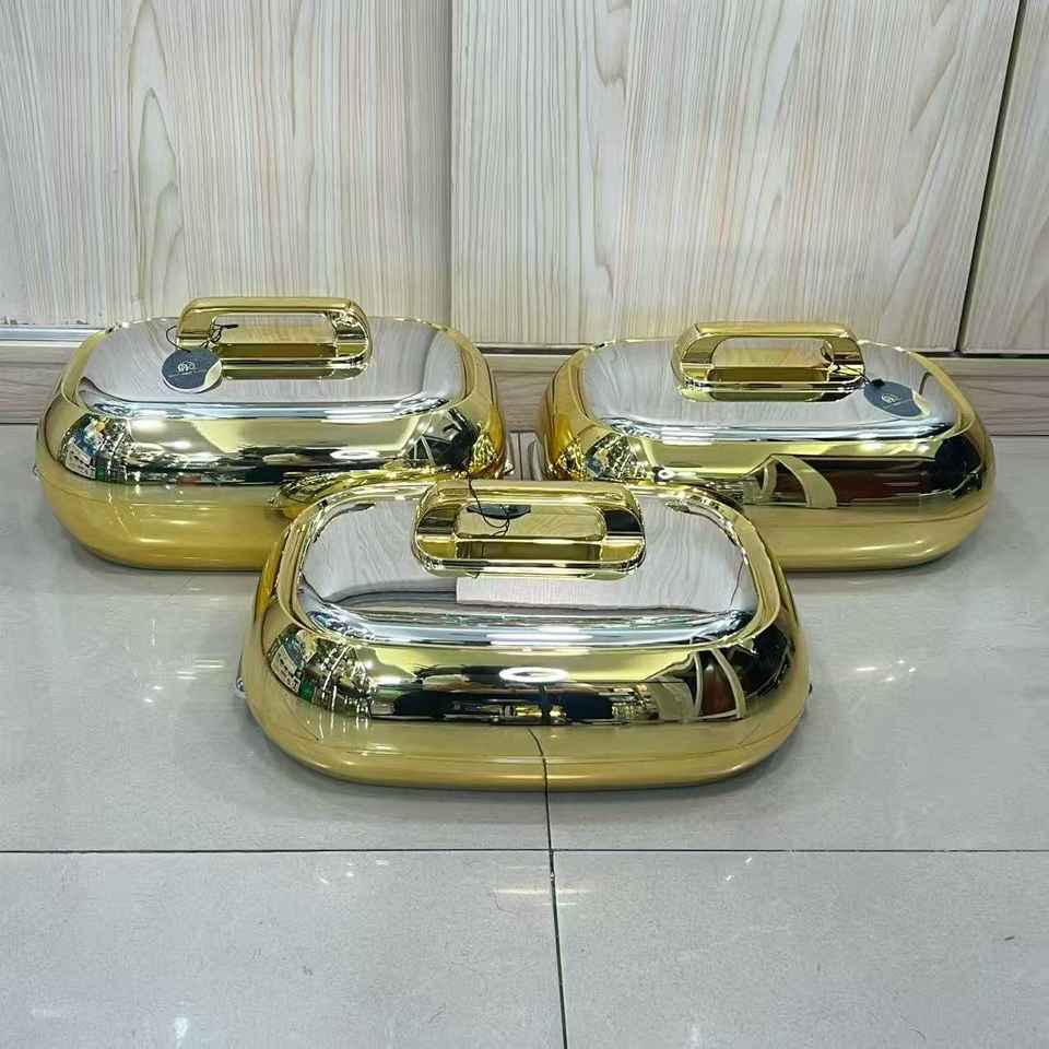 High Class Thermal Food Warmer Set 4.5L 5.5L 6.5L Gold Mirror Hot Pot for Gourmet Catering Buffet Table Decoration