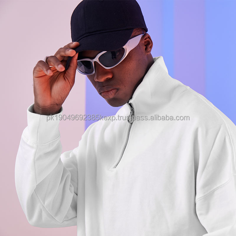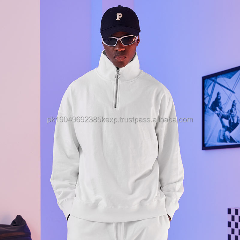 Col haut tissu éponge quart sweat-shirt zippé vêtements personnalisés logo hommes 14 sweats à capuche zippés