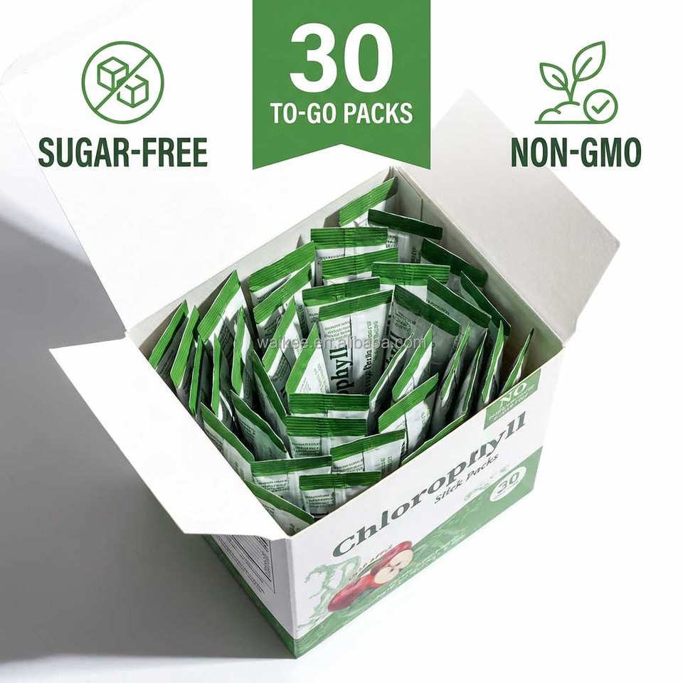 Bâtonnets de Chlorophylle Haute Concentration – 30 Sachets Pratiques – Goût Pomme Rafraîchissant – Supplément Superaliment Végétal pour l'Équilibre Interne