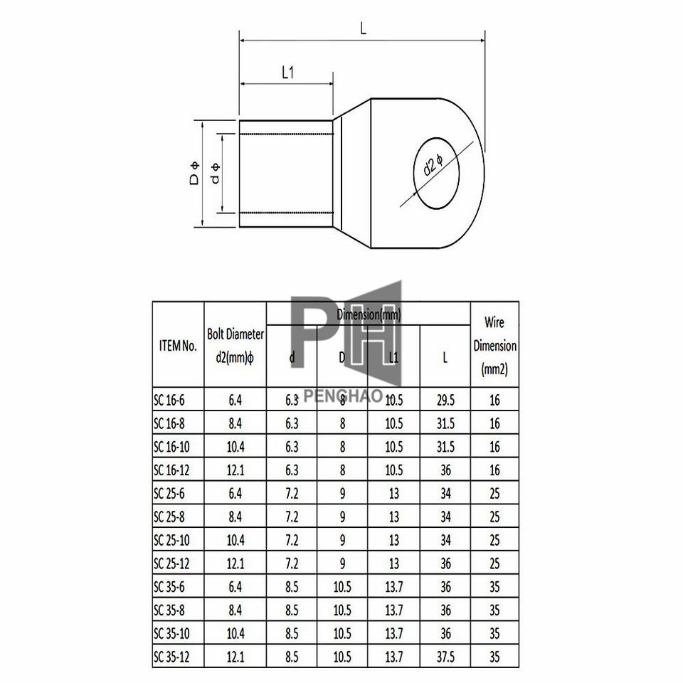 Haute conductivité 16-35mm2 fil de cuivre étamé nez borne à sertir SC Type cosses anneau câble connecteur Kit pour câblage électrique