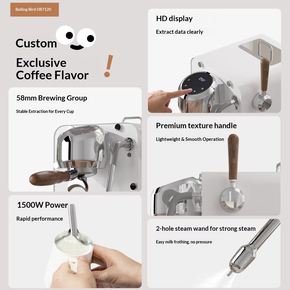 Machine à café semi-automatique professionnelle haute performance, électrique, pour camping-car, prix réduit, capacité 40 oz, économe en énergie, stable
