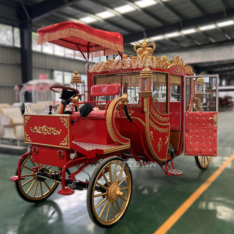 Chariot de mariage royal à cheval électrique rouge à 4 roues à haute configuration avec lumières LED pour 4 à 6 personnes