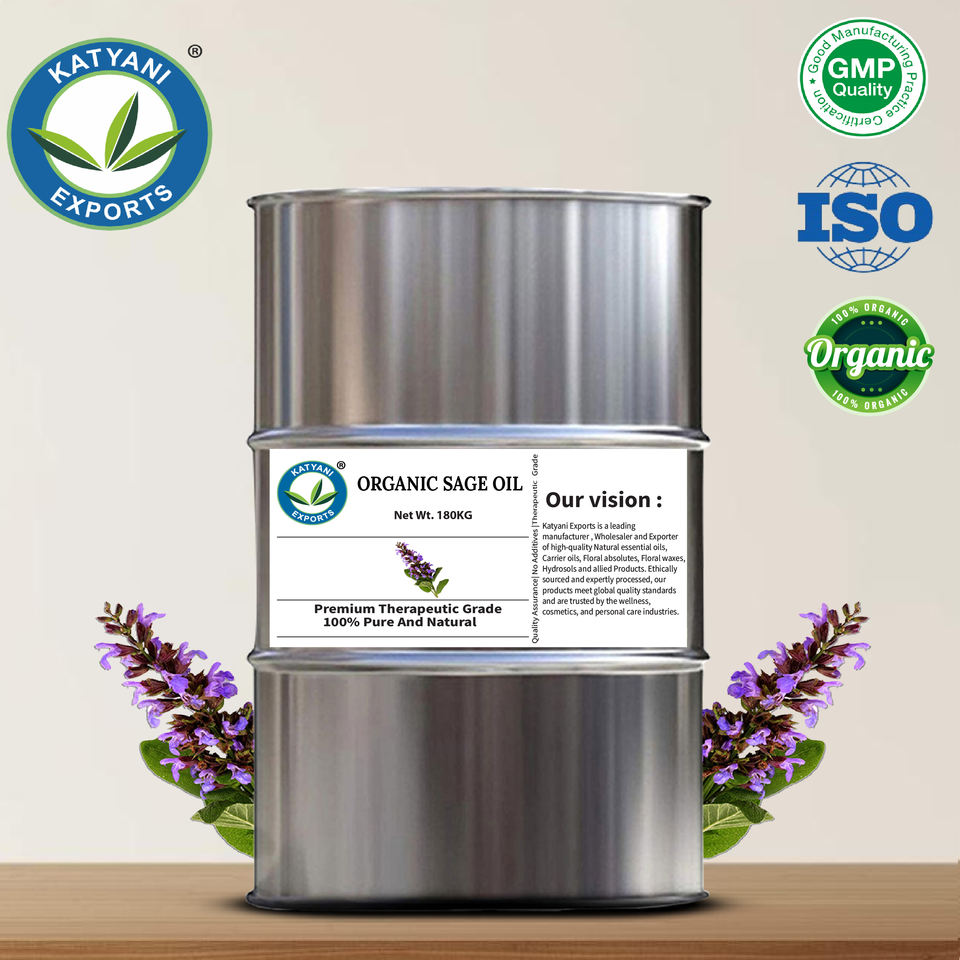 Huile essentielle de sauge biologique de qualité supérieure, 100 % pure et naturelle, pour massages thérapeutiques et mélanges de spa par Katyani Exports