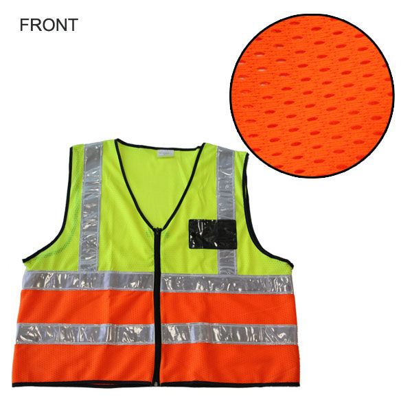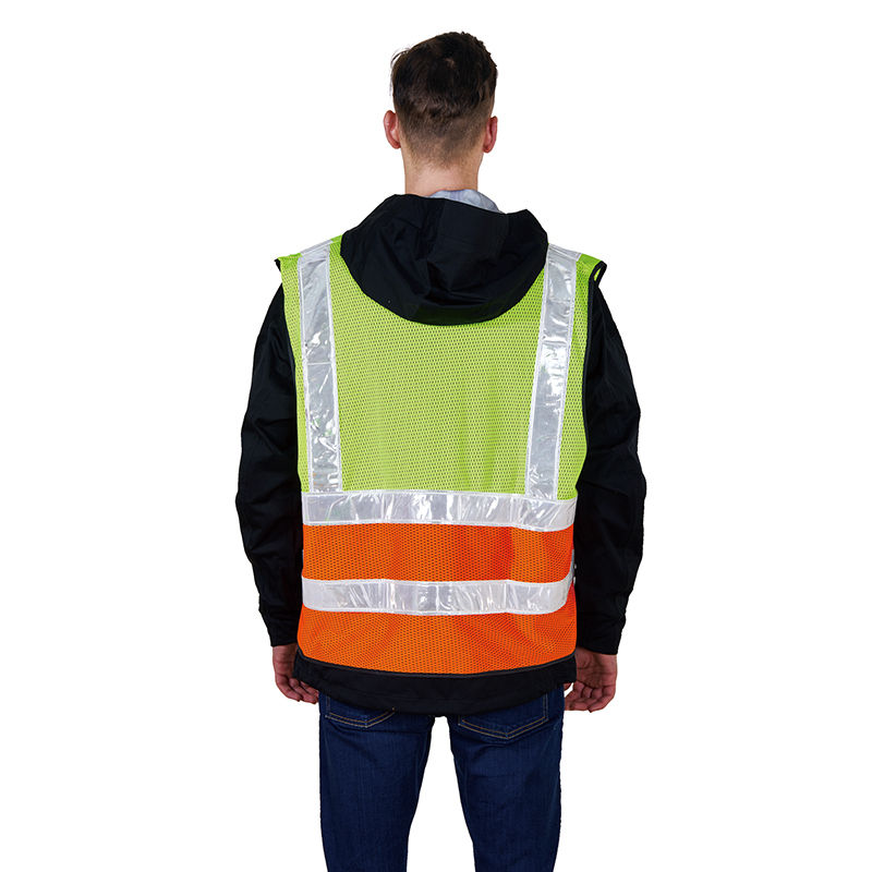Haute visibilité, respirant, polyester, bande réfléchissante en PVC, fermeture éclair, logo personnalisable, poche pour carte d'identité, maille, résistant au feu, travail intensif