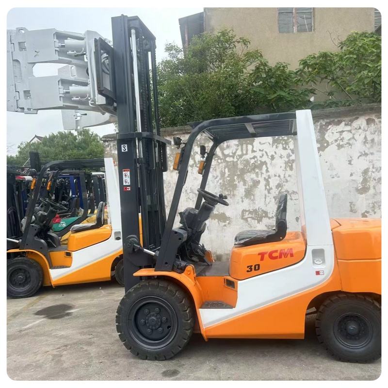 Chariot élévateur diesel TCM 3 tonnes d'occasion, 4x4, pneus pleins, excellent rapport qualité-prix, vente chaude, prix bas, Shanghai
