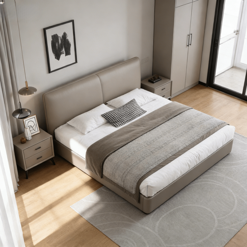 Lit en cuir [Sur pied : Lattes silencieuses 4D]