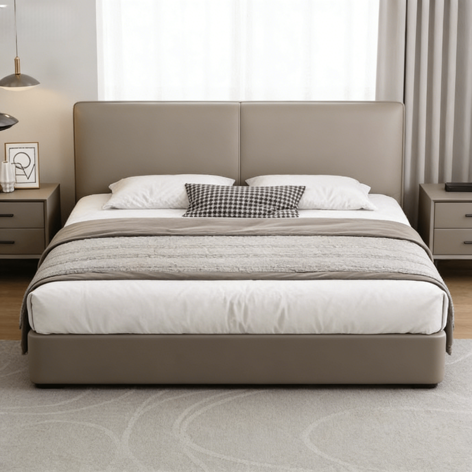 Lit en cuir + 2 tables de chevet [Sur pied : Lattes silencieuses 4D]