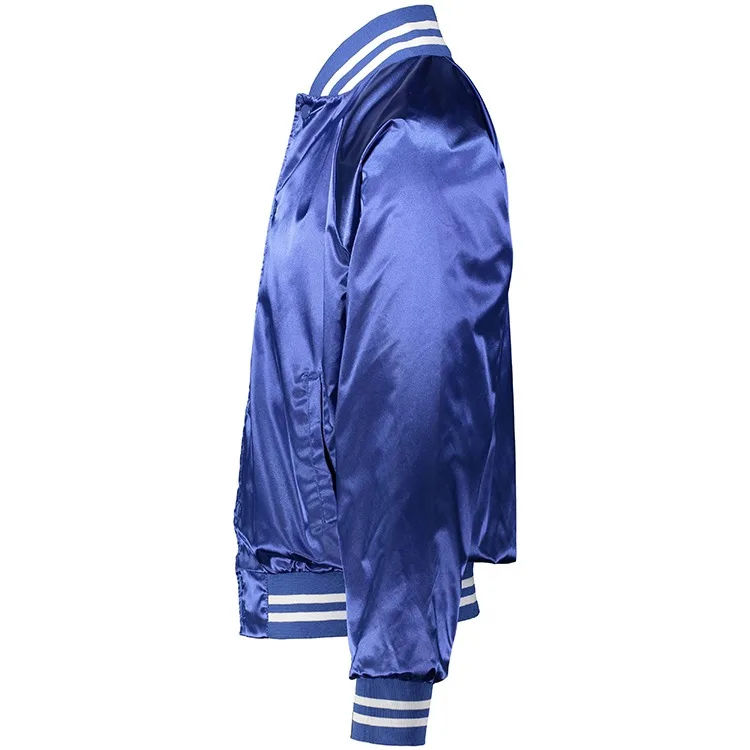 Veste universitaire en satin brodée sur mesure, coupe ajustée, veste bomber, veste en polyester pour garçons, broderie personnalisée par sublimation