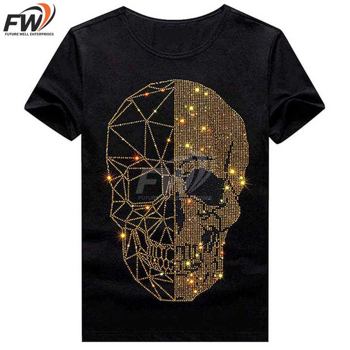 T-shirt graphique vintage délavé à l'acide avec strass personnalisés pour homme, 100 % coton tricoté, coupe ample imprimée