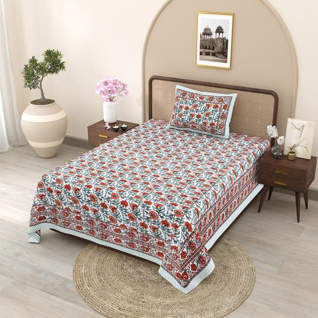 Parure de draps plats 100 % coton à motif végétal personnalisé, imprimé réactif, 1 taie d'oreiller, 300 fils/cm², écologique