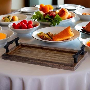 Plateau de service en bois personnalisé 3 pièces ensemble poignée en laiton pour café thé dîner petit déjeuner plateau meilleur prix par f s international