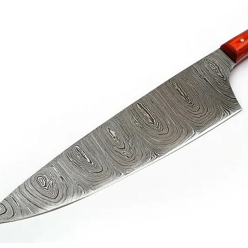 Couteau de Chef de Cuisine en Acier Damas de Haute Qualité, Lame Pleine Longueur, Manche en Bois Durable, Forgé à la Main, Écologique pour la Préparation Culinaire