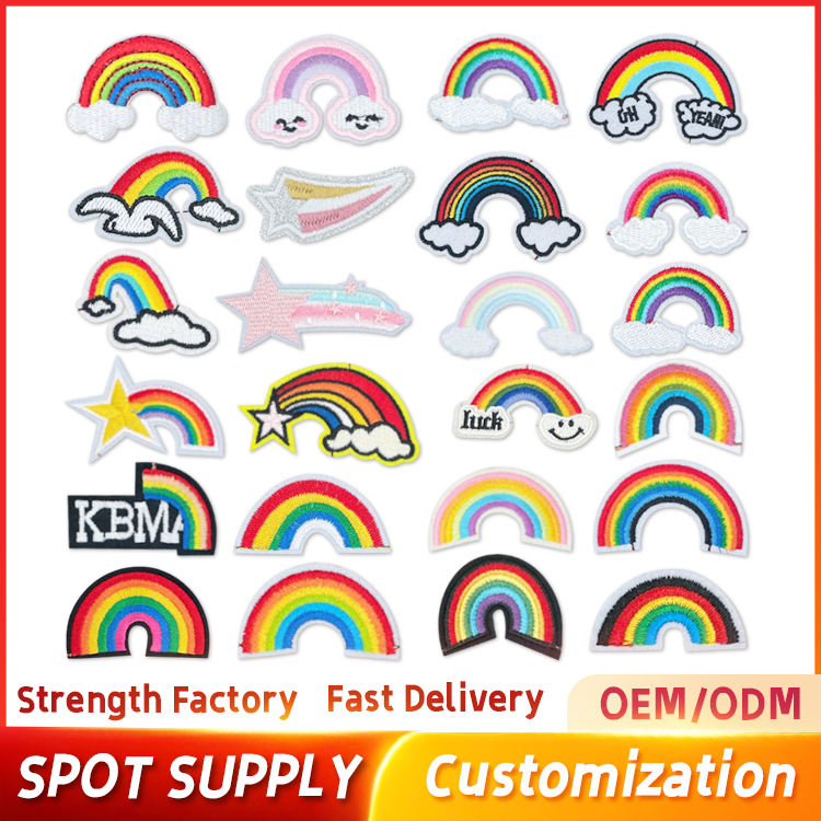 Patchs tissés en chenille écologiques à motif arc-en-ciel brodé en alphabet haute définition pour t-shirts hommes femmes DIY Applique