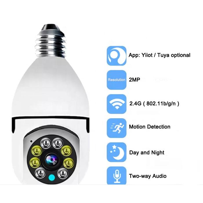 Ampoule de Vision nocturne sans fil haute définition caméra de suivi automatique 360 degrés Wifi CCTV ampoule de sécurité caméra PTZ