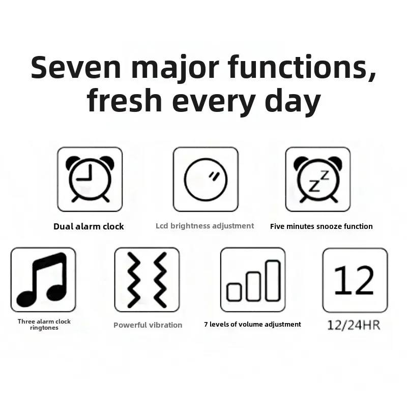 Réveil puissant à écran VA haute définition, design simple et créatif, mécanique à vibration, électronique multifonction pour étudiants