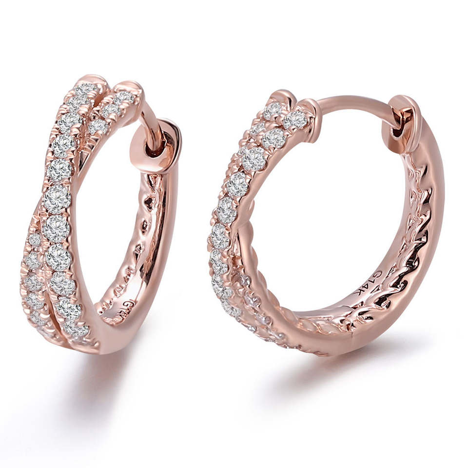 Boucles d'oreilles créoles de luxe en argent plaqué or rose, serties de diamants naturels taille brillant, très demandées, idéales pour les mariées et les occasions spéciales