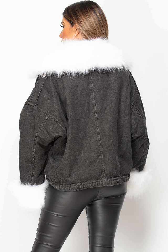 Veste denim en fausse fourrure blanche coupe surdimensionnée noire personnalisée directe d'usine à forte demande conçue pour les femmes pour un confort en toutes saisons