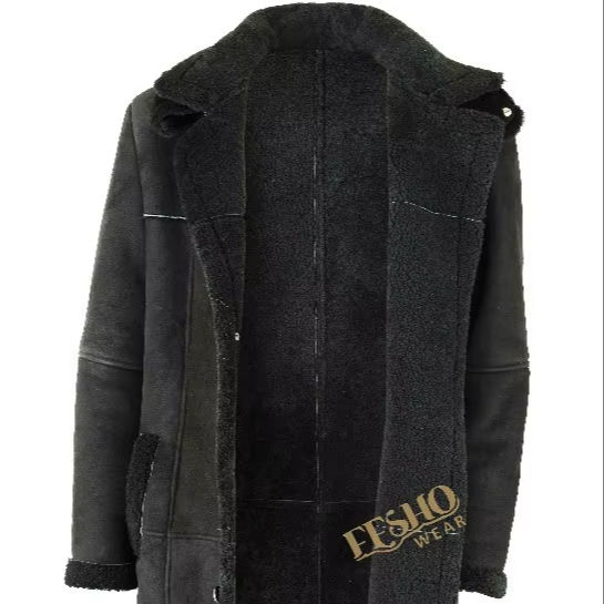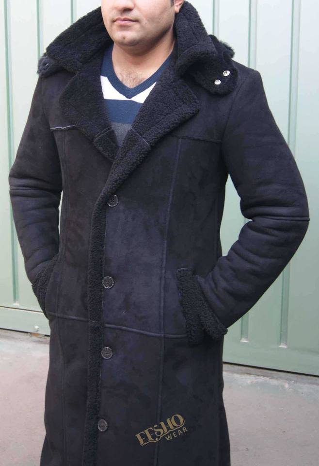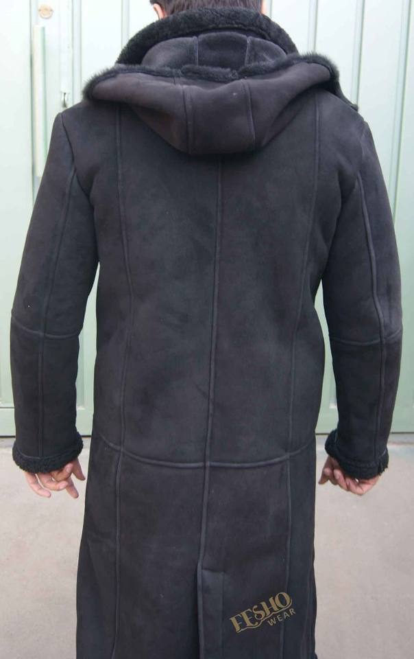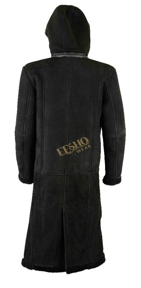 Men Long Coat with Hood:Made from Genuine Sheep shearling leather