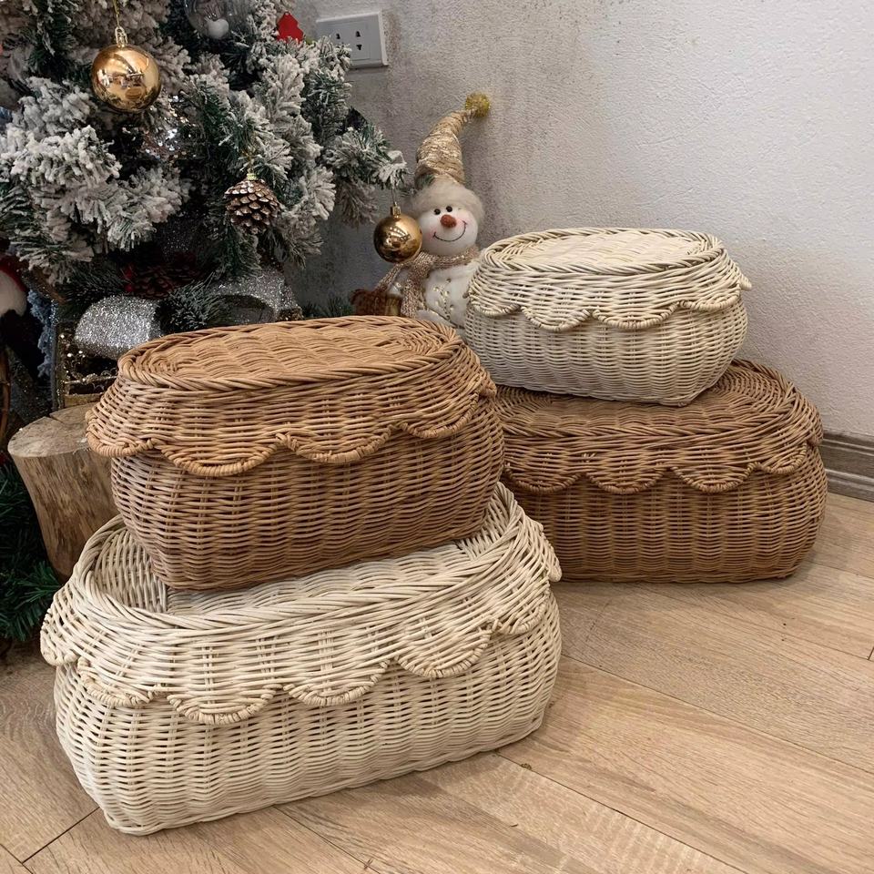 Haute demande fait à la main en rotin naturel flore pétoncle panier conteneurs nouveauté Vintage rotin paniers de rangement Top acheter des articles